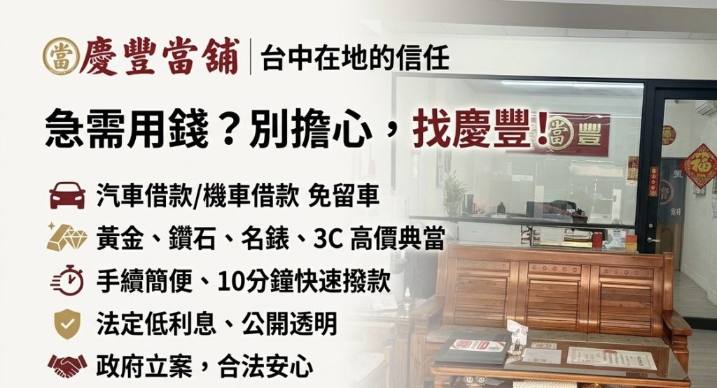 台中太平慶豐當鋪機車借款流程簡單不繁瑣,讓你快速借錢,及時紓困
